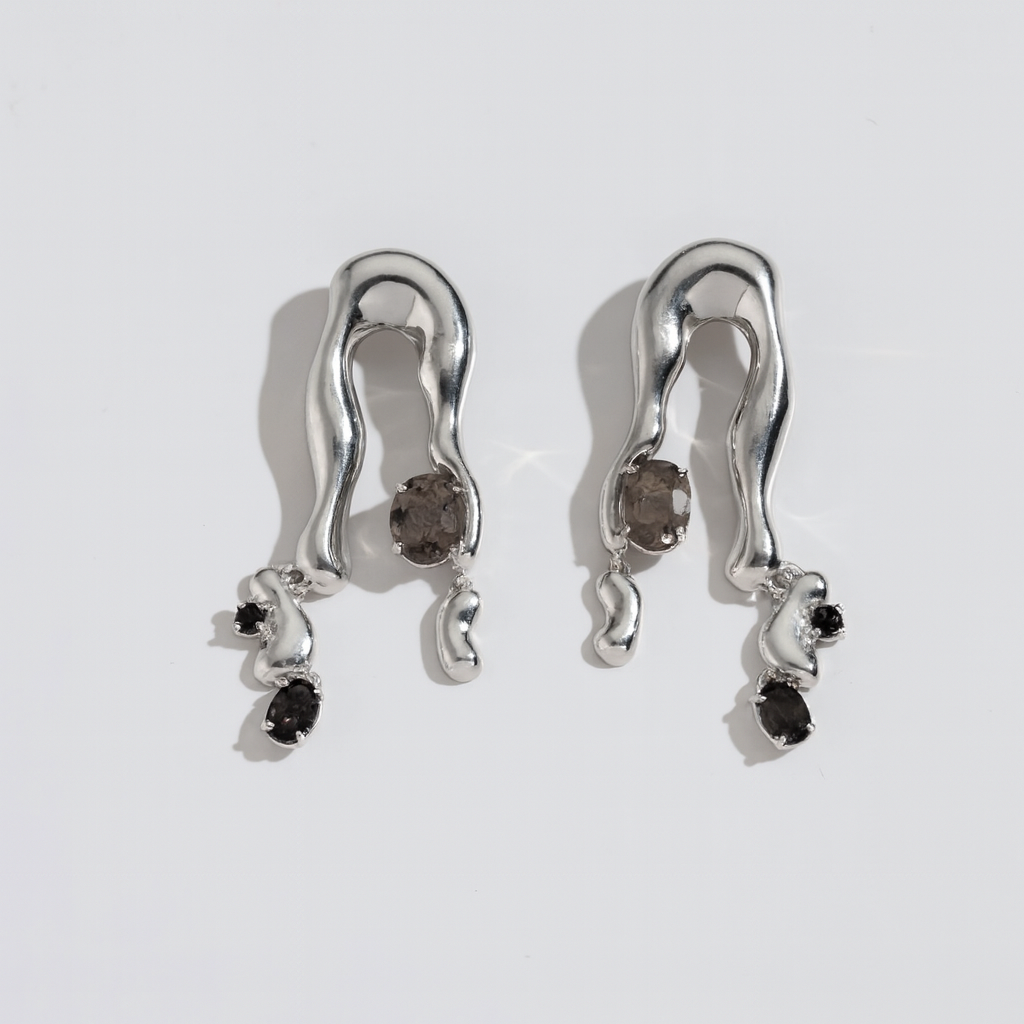 Brinco Cléo com Quartzo Fumê