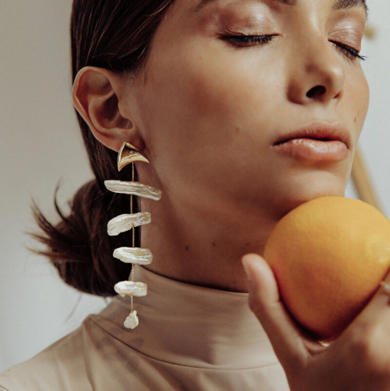 Todas as nossas peças douradas recebem uma espessa camada de Ouro 18K (10 milésimos) e as prateadas uma camada de Ródio. Ambos metais nobres que garantem cor, resistência e mais brilho às joias.