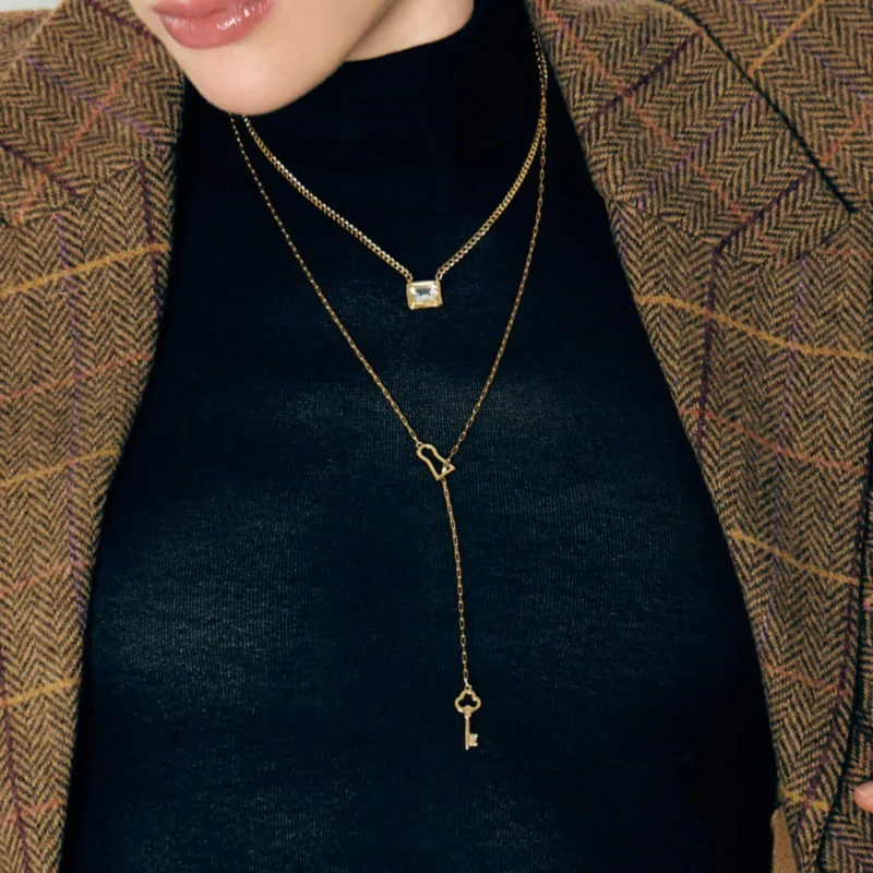 Chave com 23 mm e topázio incolor de 1,5 mm. Fechadura com 15 mm.